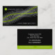 Green and grey crossed curved lines and circle modern custom business card template featuring two lime green and several grey crossed curved lines on black. A fully customisable template perfect for professional use.