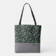 A classic look with a modern twist, this abstract design of green gran and black tote is stylish.