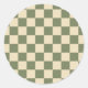 Green and Light Beige Chequerboard Classic Round Sticker