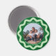 Personalize this circle magnet with your photo and descriptive text to create one of a kind magnet gifts for friends, parents and grandparents. The wavy line bottle cap style squiggle is chic and trendy in pale mint green on a forest green background. Create your own custom magnet by using the blue edit design button to change the colors and fonts to suit your style completely.