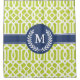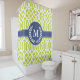 Green and Navy Blue Moroccan Trellis Monogram Shower Curtain