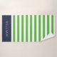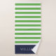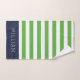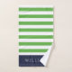 This custom made-to-order bath towel set has a preppy horizontal stripe pattern in navy blue, green and white. Personalise it with your monogram name and initial or other custom text. Use the design tools to choose any background colours, edit the text fonts and colours or upload your own photos to create a unique custom set of bath towels to match any bathroom decor. The set includes a coordinating bath towel, hand towel and wash cloth or select individual towel sizes as needed.