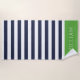 This custom made-to-order beach towel has a preppy horizontal stripe pattern in navy blue, green and white. Personalise it with your name monogram or other custom text in a modern serif font. Use the design tools to choose any background colours, edit the text fonts and colours or upload your own photos to create a custom monogrammed beach towel.