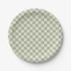 Green and Off White Chequerboard Paper Plate