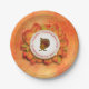 Modern wreath of autumn leaves and turkey over an orange background with texture