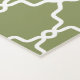 Destei's original white trellis pattern on a green background color. At the bottom, a slim orange panel with a white border adds contrast and has a personalizable name text. This design is a simple and lovely way to bring color and pattern into your practice space.