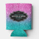 Green and pink faux glitter custom text can cooler