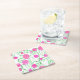 Green and Pink Flower Vines Square Paper Coaster