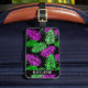 Features a tropical palm leaf design, in green and pink. Personalise with a name on the front, and a name and address on the back.