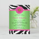 Green and Pink, Zebra Sweet Sixteen Invitation