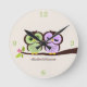 Custom designer wall clock features an adorable vector illustration of a couple of owls perched on a branch in beautiful colour schemes. Personalise with your name, monogram, initials, or a special date such as your wedding anniversary!