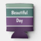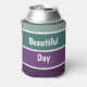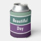 A green and purple horizontal striped pattern and the text: Beautiful Day. You can click personalise and edit the text. Write two words in one line.