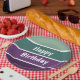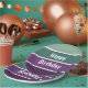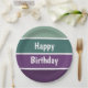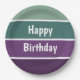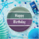 A green and purple horizontal striped pattern and the text: Happy Birthday. You can click personalise and edit the text. Write two words in one line.
