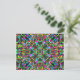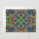 Postcard with a green and rainbow coloured mandala pattern. This beautiful fractal art mandala was created as a meditation aid, look in and see the colours, patterns and symbols and send your mind in to a deep relaxed state.