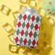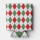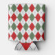 Festive colours. Green and red argyle pattern on Christmas can coolers for your personal or business Christmas parties.