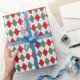 Festive colors. Green and red argyle pattern on Christmas glossy wrapping paper.