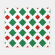 Celebrate Christmas with this bold, geometric pattern of green diamonds and smaller red diamonds on a white background. The white forms crosshatching which keeps the diamond shapes from touching, similar to a harlequin pattern.
