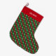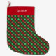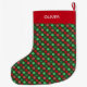 Beautiful green and red polka dots on hunter green background Christmas stocking. Shades of green and red polka dots. Name is ready to be personalised.