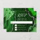 Make a bold and elegant first impression with this green and silver agate marble RSVP card, featuring rich jewel tones, organic stone textures, and shimmering silver accents perfect for fall and winter celebrations. The deep emerald hues paired with metallic silver detailing create a dramatic yet refined look ideal for a wedding RSVP, birthday RSVP, or Sweet Sixteen RSVP with a formal, modern, or glamorous aesthetic. Inspired by natural agate and geode patterns, this luxurious design coordinates beautifully with upscale seasonal events and is fully customizable to match your details, adding timeless sophistication to autumn and winter celebrations alike.