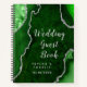 This elegant and glamourous wedding guest book features a green agate marble background with faux silver glitter accents. The text combines handwritten script and modern sans serif fonts for a classy and sophisticated look. This will be perfect for autumn fall and winter weddings.