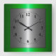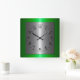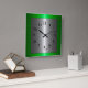 Green and Silver Stainless Steel Metal Square Wall Clock