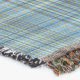 Glen plaid print in green,teal, blue, lighter blues, and tan tailored throw has matching pouf and throw pillows.
