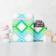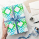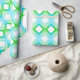 Patterned any occasion paper gift wrap in lime green and teal, the white background can be switched to any colour.
