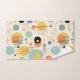 Colourful towels in yellow and turquoise with abstract pattern inspired by Wassily Kandinsky. Lines, dots and geometric shapes; this design is just for you if you are into mid century modern aesthetic and retro creations! Bring colour to your home with this beautiful towel set.