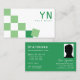 Green and White Chessboard with Monogram & Photo Business Card