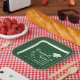 Create personalised green and white graduation paper plates for the class of 2025 graduate with a Congrats Grad saying, and graduate's cap and diploma illustrations. Template makes it easy to type your name, year and school name. The background colour is easy to change inside the design tool to match your school colours.
