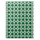 A bold, graphic pattern of interlocking green and white diamond shapes. The white diamonds each contain a small green diamond making green the dominant colour of the geometric design.