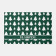 Destei's original pattern of simple white Christmas fir tree silhouettes on a green background colour. There is also a personalizable text area for a name or other custom text.