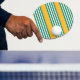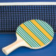 Green and white five stripe pattern with yellow ping pong paddle