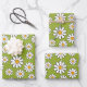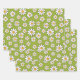 Green and White Floral Daisy Pattern Wrapping Paper Sheet