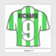 Football sticker. Green and white Football Shirt Design to Personalise. Add Name and Number.