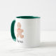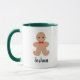 This mug has a picture of a cute gingerbread boy wearing a red bow tie and decorative peppermint candy buttons. The gingerbread boy has slightly darker edges to give it the appearance as if it popped fresh out of the oven. Fine icing detail forms his coat and pants. Personalise this mug by adding a name or message.