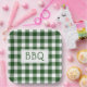 Get ready for your barbecue party with paper plates featuring a classic dark green and white buffalo plaid with the letters BBQ in a white rectangle in the centre.