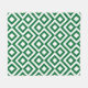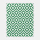 This bold green and white geometric pattern is an original ornamental design. White meanders angle around green diamonds containing white diamonds. Green zigzags provide subtle separation between the winding paths.