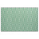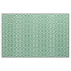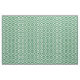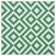 Stylish fabric features a bold, geometric green and white meander pattern. The original ornamental design has white meanders that angle around green diamonds containing white diamonds. Green zigzags provide subtle separation between the winding paths.