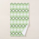 Designer bath decor, a bath towel set with stylish patterned print in shades of green, white background on each can be personalised to any colour, and text can also be added, pattern is removable if you prefer.