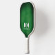 Classy and stylish rich green background with name and initials/monogram on the front, with classic athletic style stripes on the reverse.