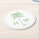 Green and White Palm Palmetto Tree Monogram Round Paper Coaster