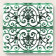 Green and white scrollwork pattern coaster