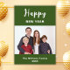 Green And White Simple Happy New Year Family Photo Holiday Card