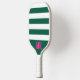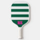 Green and White Striped Pattern Monogram Pickleball Paddle