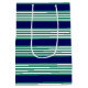 Green and white stripes pattern with navy blue medium gift bag