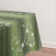 An elegant Christmas tablecloth featuring a large swirling pattern of white swirls, stars and snowflakes scattered over a green background to add a touch of class and style to your Christmas decorating, entertaining and dining for this holiday season.