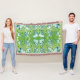 Green and white Whimsical Romantic Hearts pattern Throw Blanket