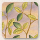 The purple and gold of a sunset background is the perfect contrast to the yellow and green leaves that are the focus of this piece by Megan Meagher. You can almost hear the wind sing as it gently caresses the leaves.
