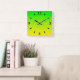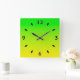 Green and yellow neon gradient square wall clock